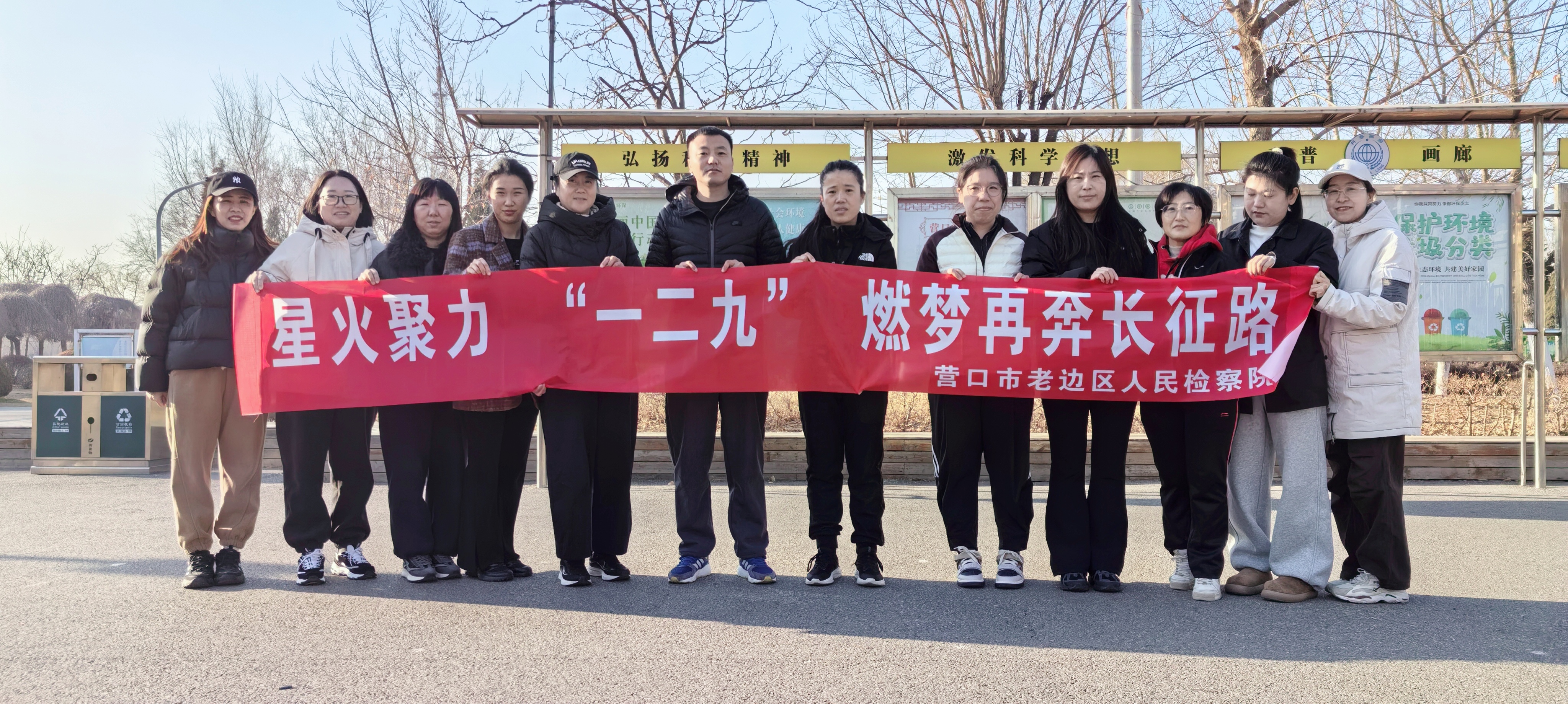 为大力弘扬爱国主义精神,缅怀“一二•九”运动先辈的崇高理想与奋斗足迹,激励全院干警以昂扬的斗志和强健的体魄投身新时代检察事业,12月9日,老边区人民检察院第三检察部在熙湖公园举办“星火聚力‘一二九’ 燃梦再奔长征路”特色党建+主题长跑活动。